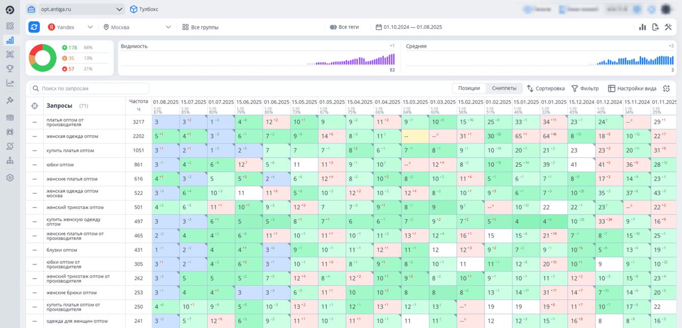 - Увеличение видимости по запросам: розница - «женские платья российского производства», опт - «опт женской одежды от производителя»