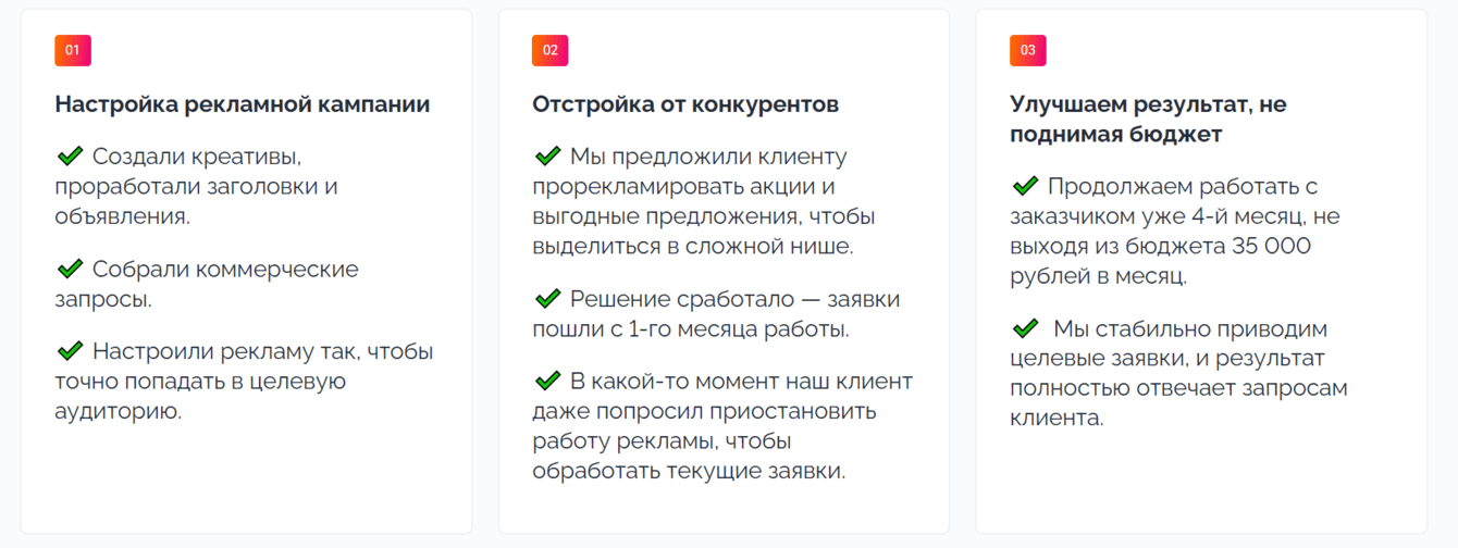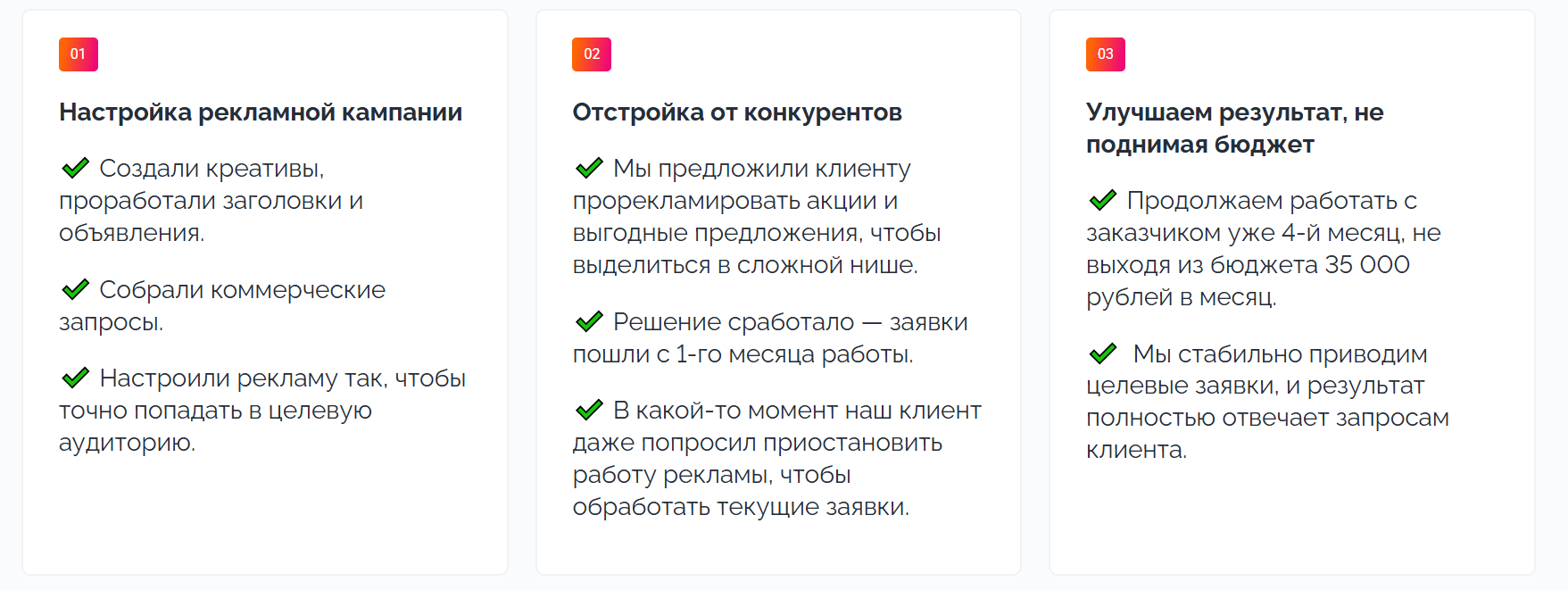 Со временем владельцы фирмы заметили рост конкуренции в своей нише. В отличие от конкурентов, у которых уже были сайты и реклама, наш заказчик продвигался через сервисы размещения объявлений и сарафанное радио. Поэтому обратился к нам за помощью в привлечении клиентов из интернета.