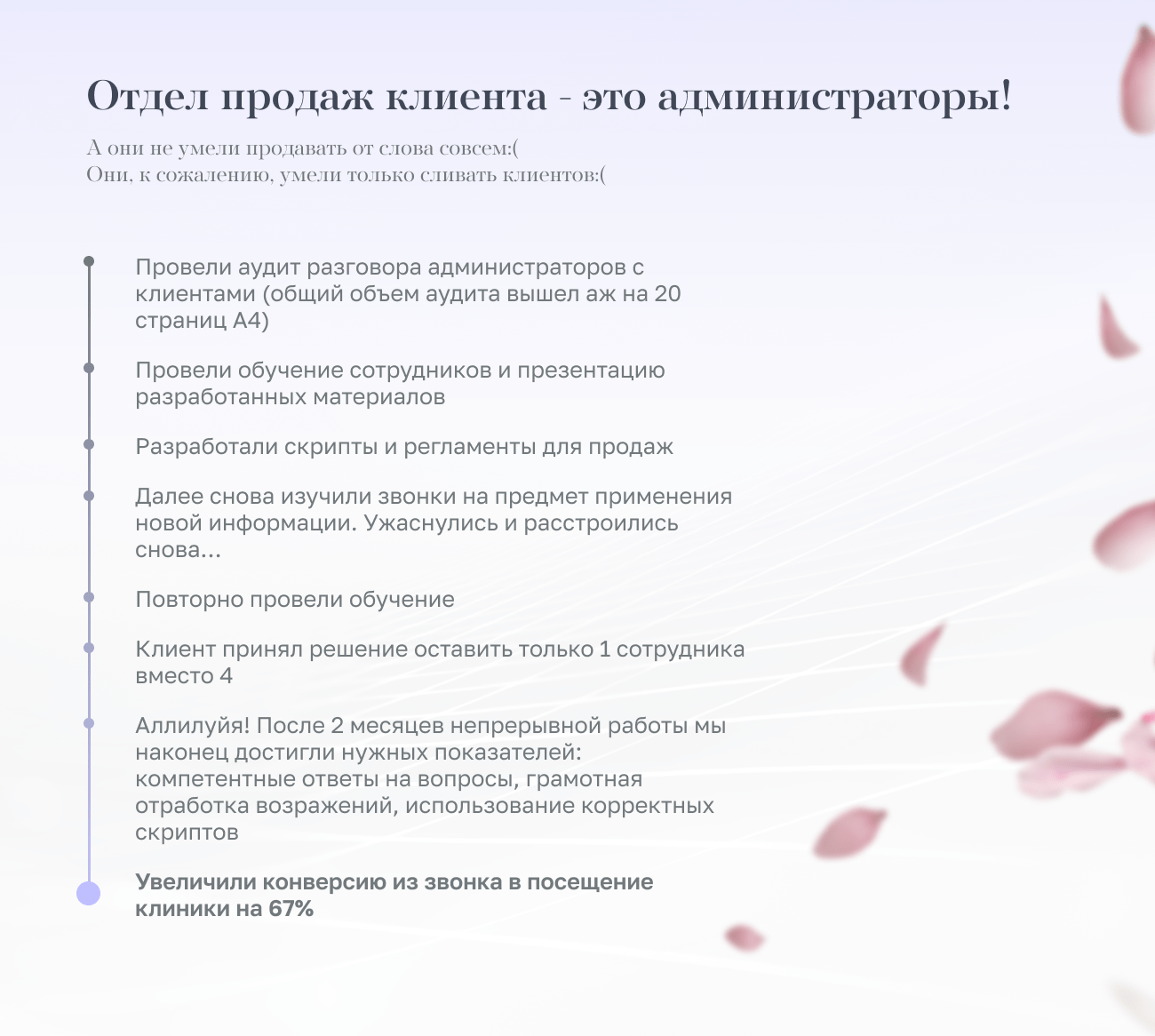 3. Вместо 4 менеджеров плохо отрабатывающих телефонные звонки, оставили 1 хорошо обученного специалиста.
