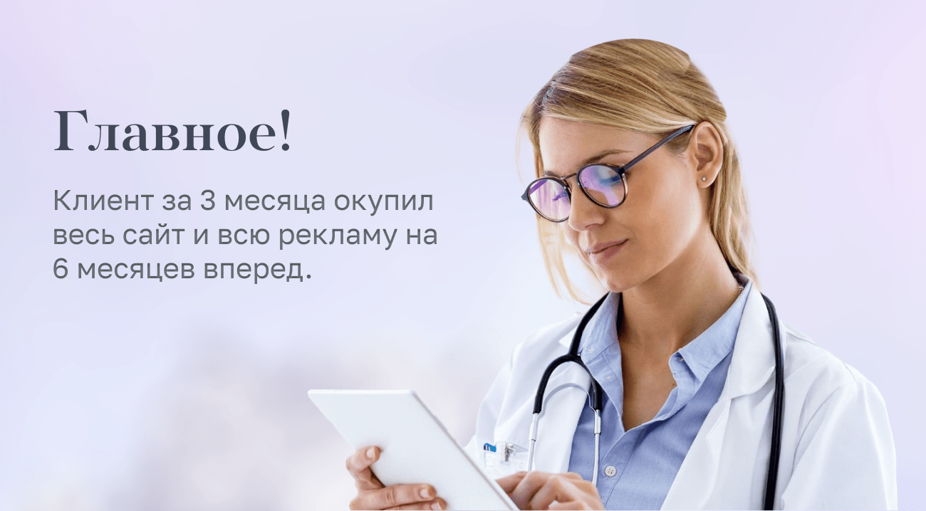 - Главное! Клиент за 3 месяца окупил весь сайт и всю рекламу на 6 месяцев вперед.