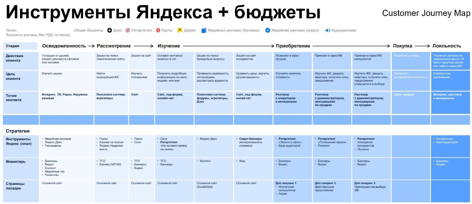 Специалисты Яндекса из отдела по работе с ключевыми клиентами помогли нам построить CJM для наших проектов и дали рекомендации по использованию инструментария Яндекса в CJM.