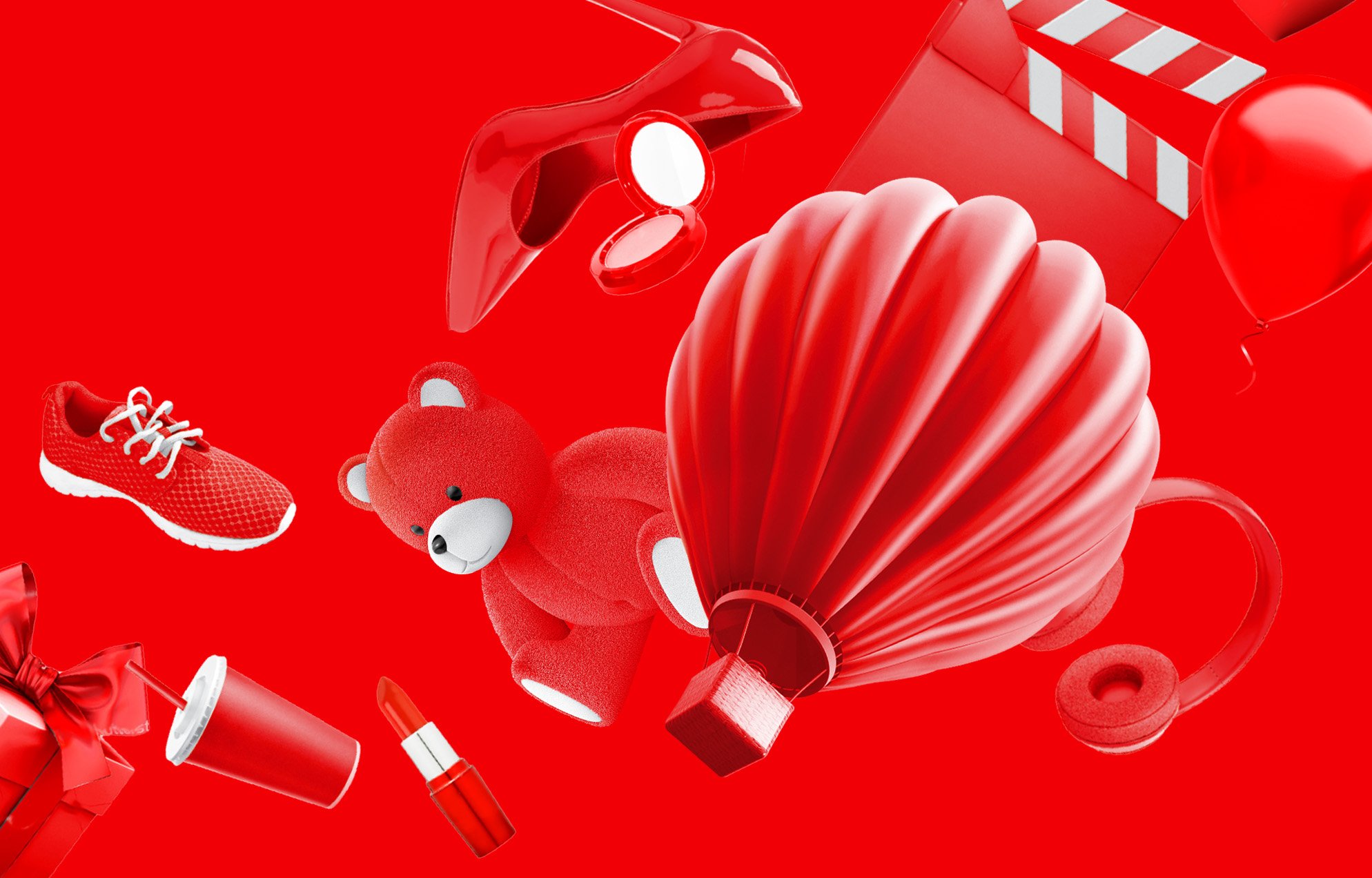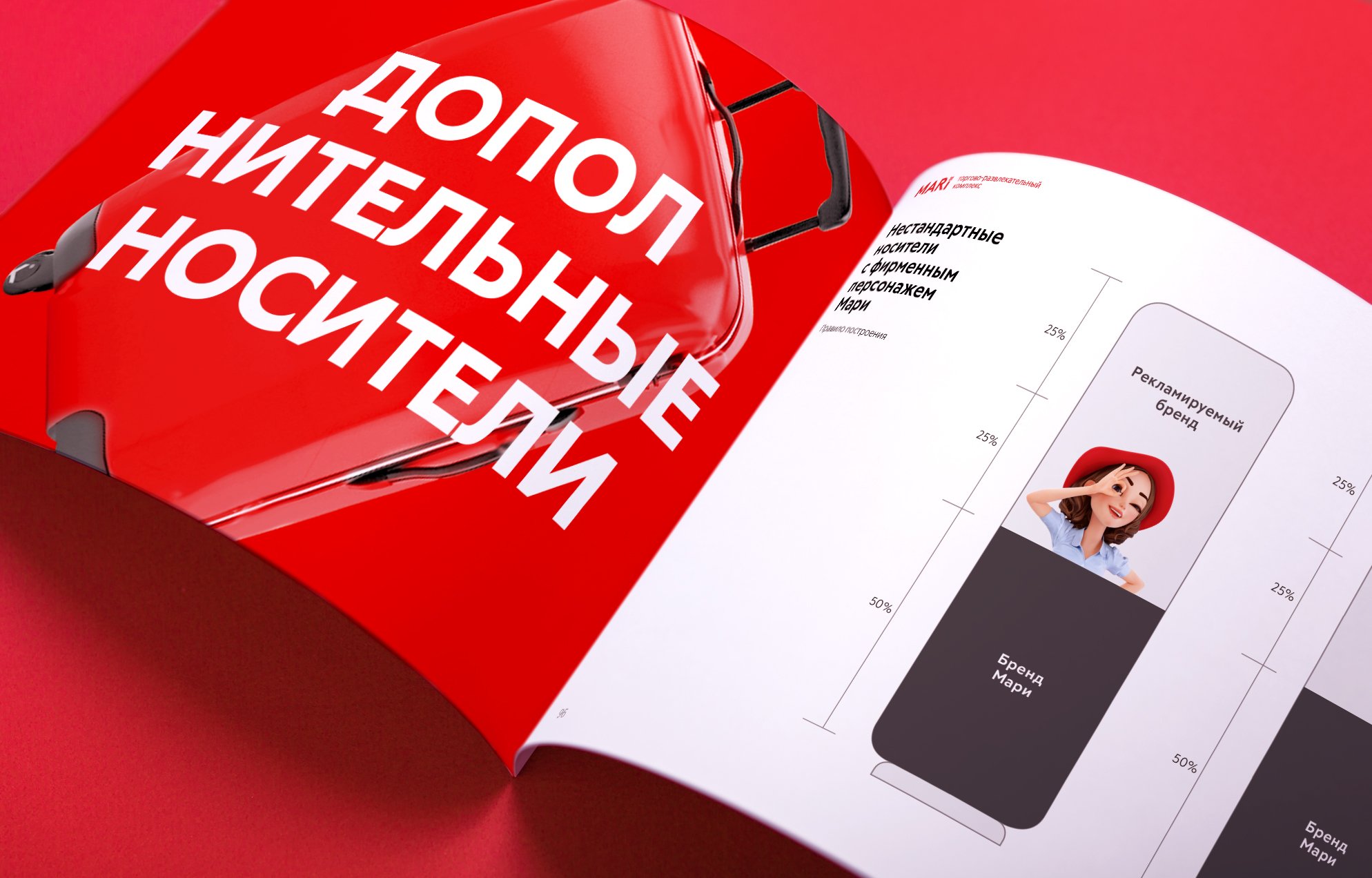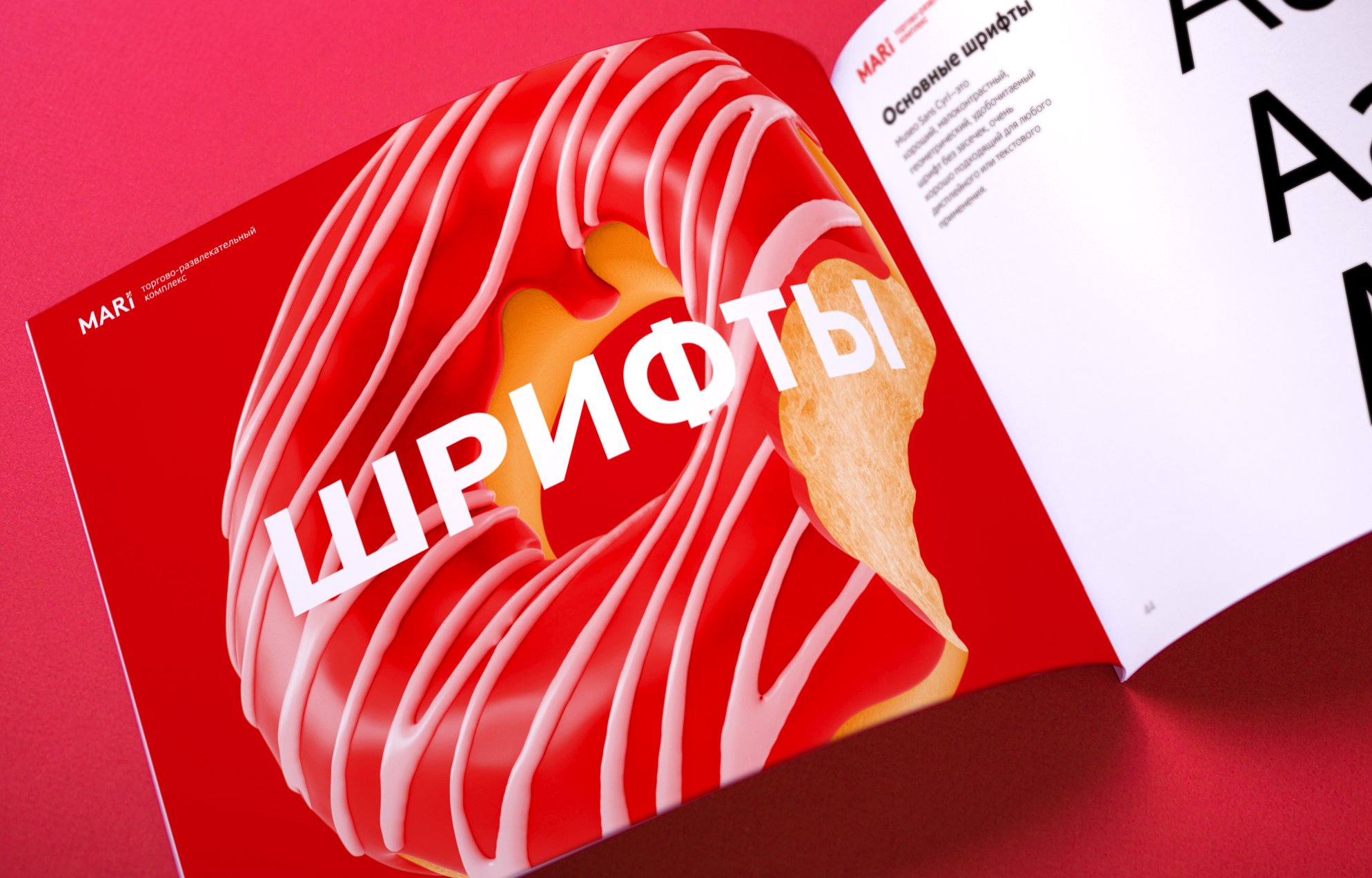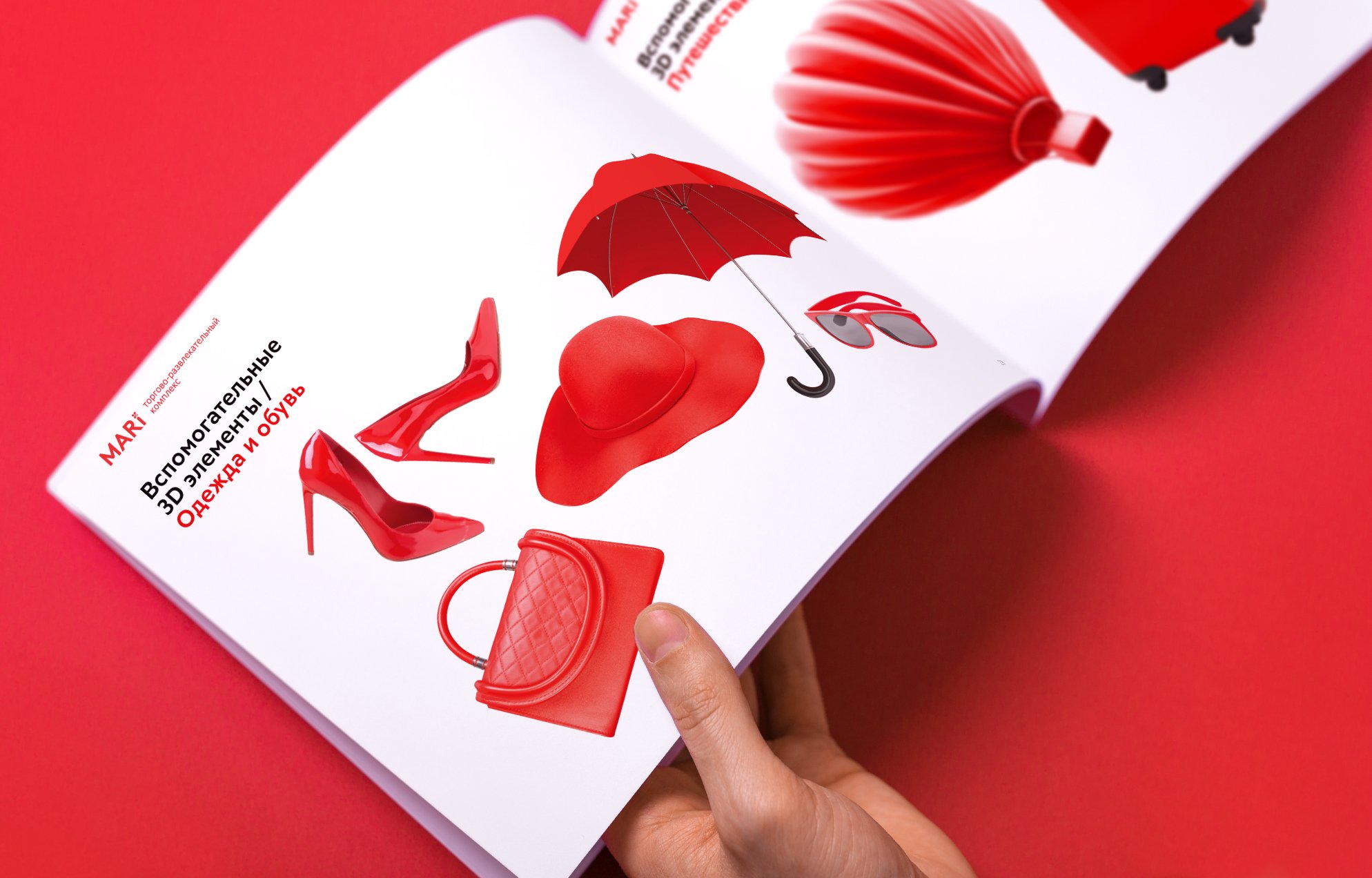 Развивая айдентику бренда, мы разработали систему фирменных элементов - ярких штучек из мира Мари. Стильные предметы фирменного красного цвета помогают в навигации и делают рекламные посылы брендов-арендаторов сфокусированными и интуитивно понятными.