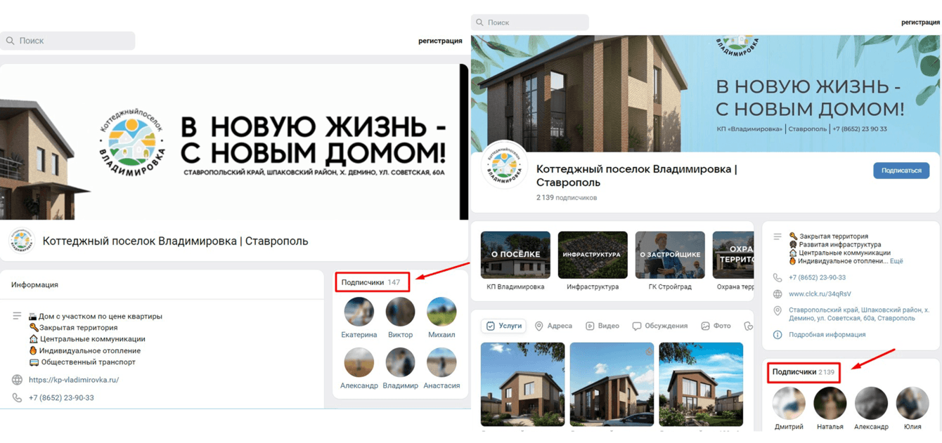 Мы разработали стратегию продвижения для коттеджного поселка «Владимировка» в Ставропольском крае. Всего за девять месяцев работы нам удалось достичь внушительных результатов: более 2 000 подписчиков в сообщество, высокий уровень вовлеченности и стабильный прирост целевой аудитории. Делимся, как нам это удалось!