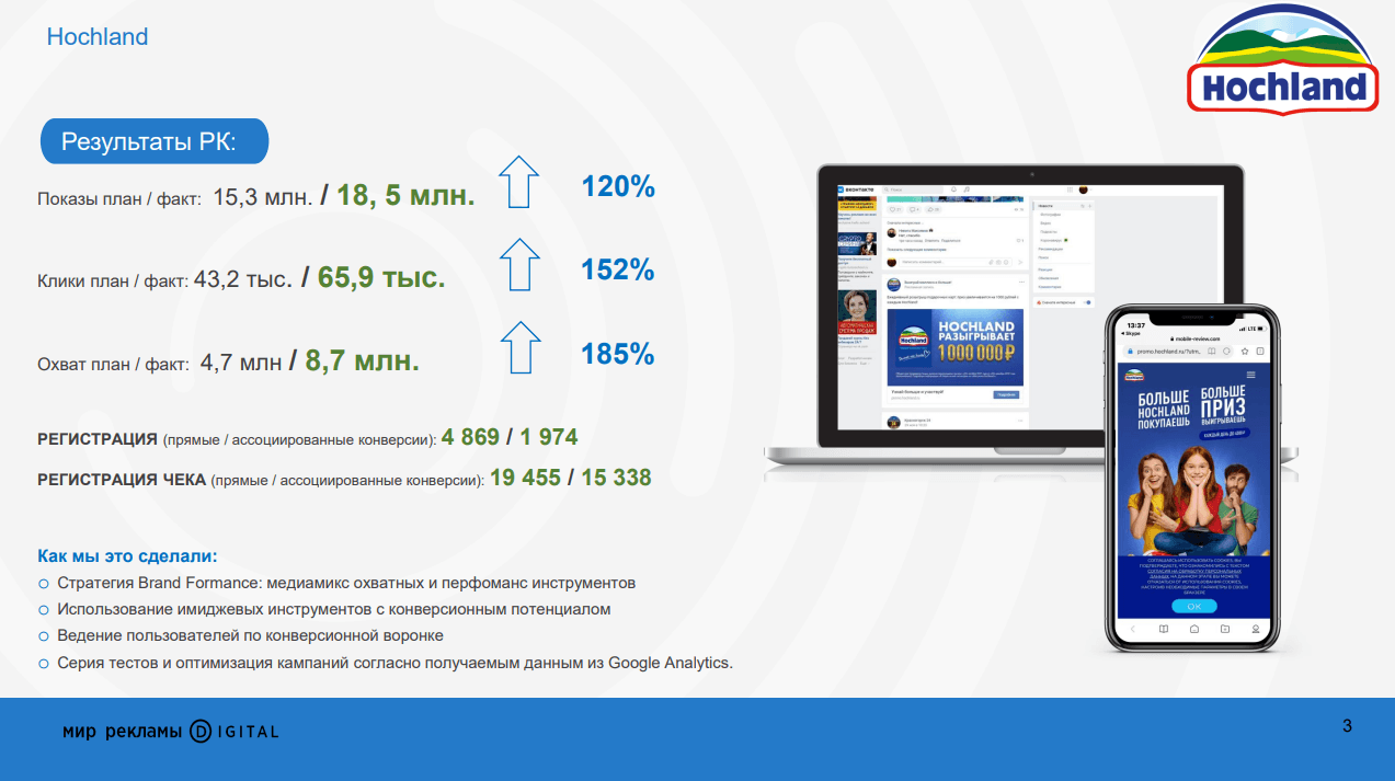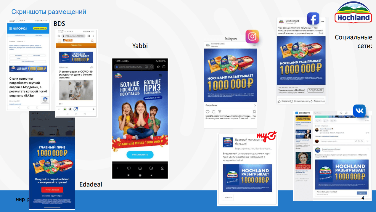 с 21 октября по 21 декабря была проведена рекламная кампания, в ней была задействована таргетированная реклама в социальных сетях, контекст, приложение по доставке еды, programmatic mobile web и app, закупка по данным ОФД.