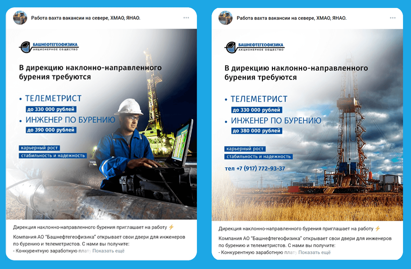 - Вынесли триггерные заголовки на изображения и подробно расписали требования в самой публикации. В отличие от таргетированной рекламы, в посеве нет ограничений по количеству текста, что позволило зацепить соискателей с различным уровнем потребления контента.