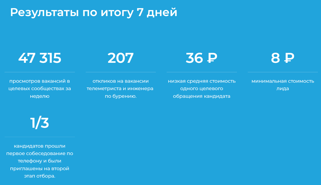 Предложить клиенту новый канал для поиска кандидатов и доказать эффективность в сравнении с традиционными работными площадками типа hh.ru. С учетом узкой географии найти специалистов с высшим профильным образованием, опытом работы в данной сфере и готовностью к работе вахтовым методом.