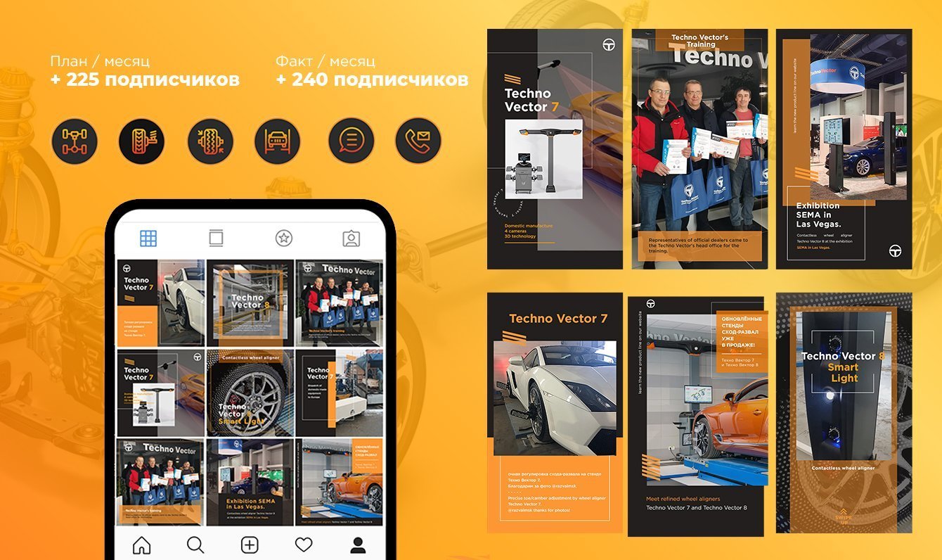 Для единого стиля разработан дизайн: обложек, шаблонов постов и stories, шапки группы. Визуальное оформление выполнено с использованием цветовой гаммы из каталога заказчика (преимущественно ярко-оранжевый, темно-серый и серый цвета).
