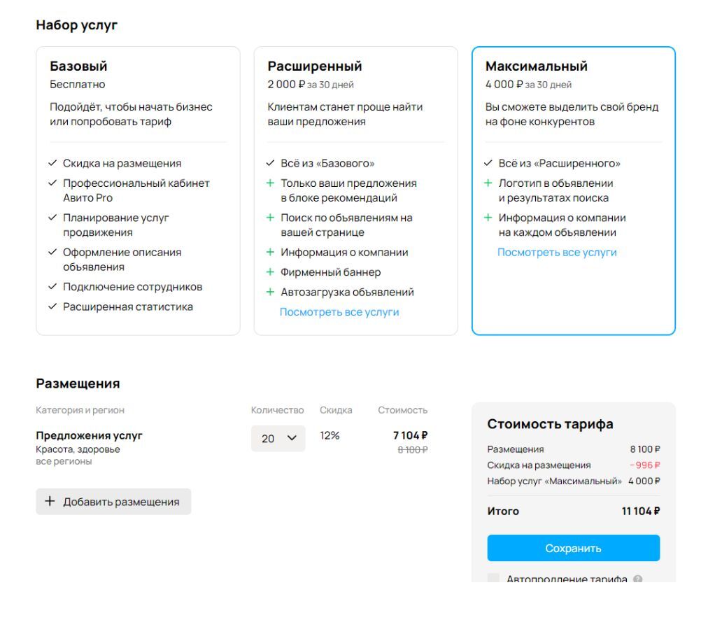 Заявки все же поступали, поэтому спустя 30 дней использования расширенного тарифа клиент попросил поменять тариф на максимальный, чтобы увеличить количество объявлений и получить больше лидов.