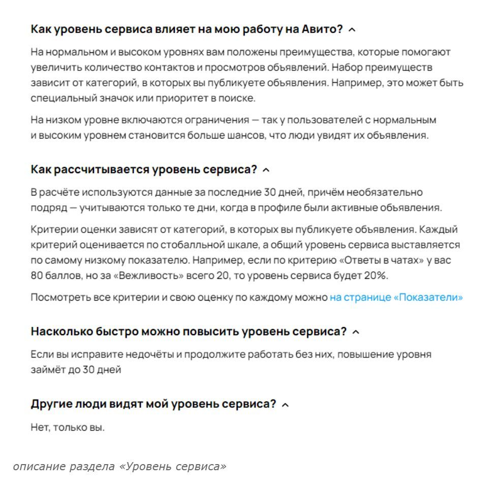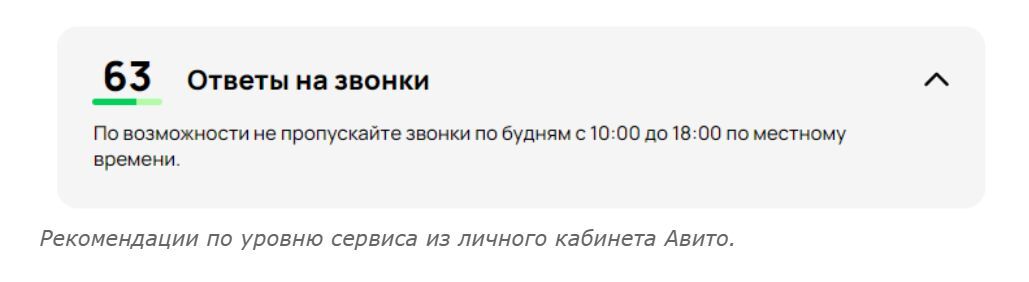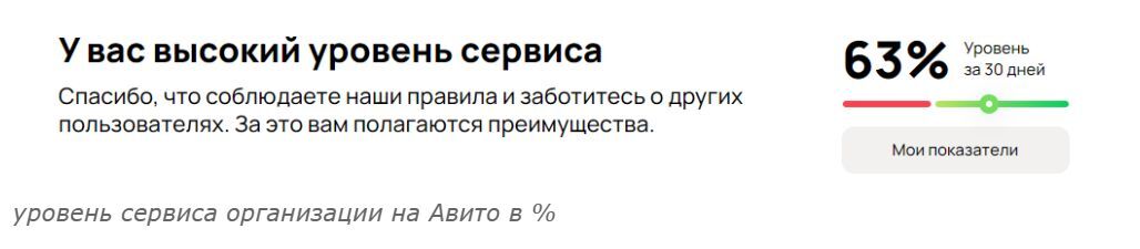 Сейчас уровень сервиса организации равен 63%. На Авито это считается высоким уровнем.