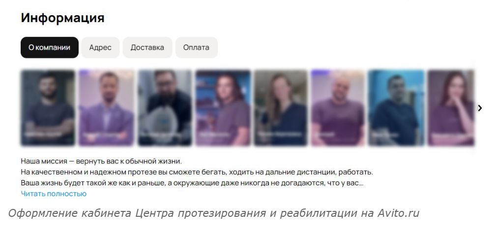Контента было мало: протезы почти сразу были отданы пациентам центра, поэтому клиент не мог предоставить нам качественные фото. Медлить с публикацией объявлений было нельзя — платный тариф рассчитан на 30 дней с момента покупки, поэтому в качестве контента были использованы скриншоты из видео, снятых ранее.