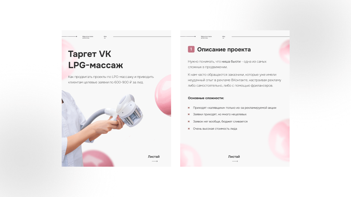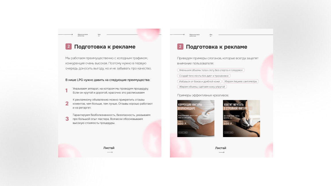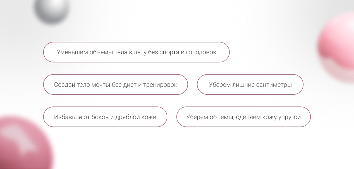 Ключевые запросы: мы использовали ключевые фразы, такие как «lpg массаж, антицеллюлитный массаж, коррекция фигуры, похудение, избавиться от целлюлита». Этот подход обеспечил высокую конверсию из клика в заявку.