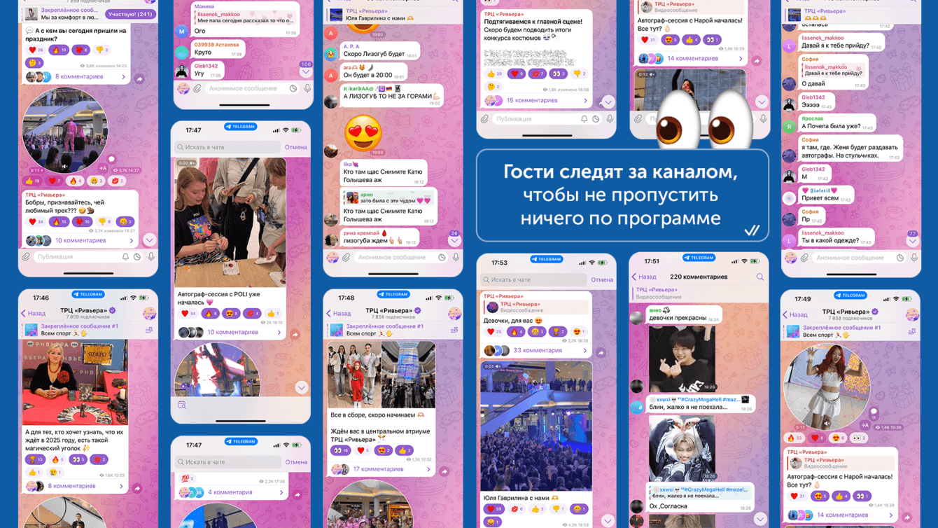 С точки зрения реальных целей клиента мы получаем живую аудиторию в подписчики канала, которая далее активно следит за обновлениями и анонсами ТРЦ и выбирает «Ривьеру» для шопинга и досуга.