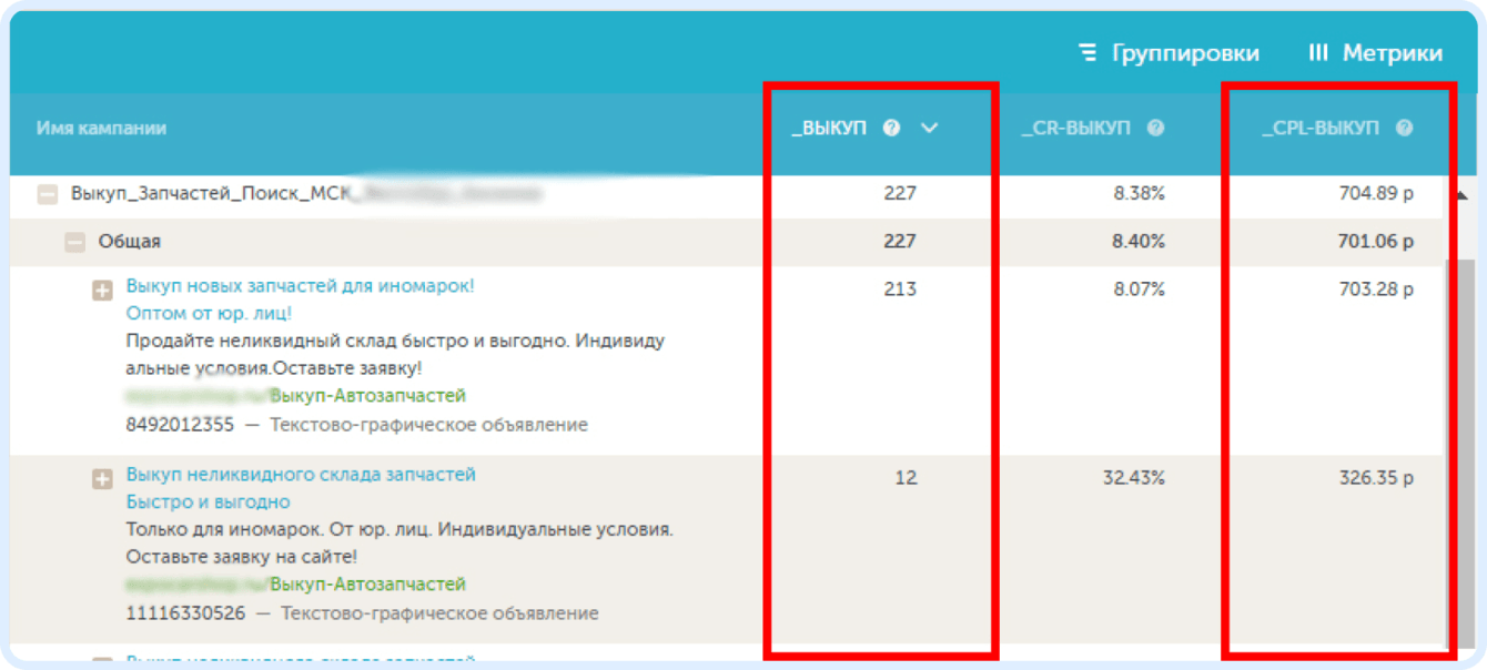 Далее мы провели срез по кампаниям на сетях. На всю РФ сети отрабатывали с наихудшими показателями эффективности, однако CPL находился в приемлемом диапазоне и было принято решение временно продолжить показы кампании при постоянном наблюдении и оптимизации.