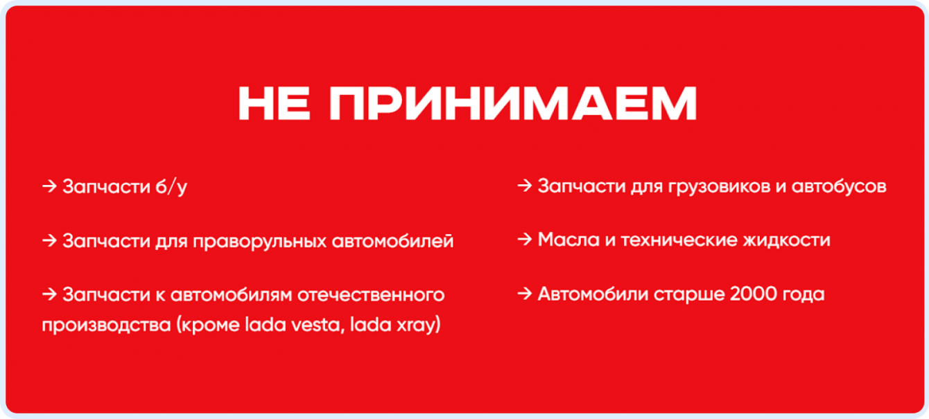 Особенности клиента: узкая ниша, работа исключительно с юридическими лицами, работа с новыми запчастями и организация доставки только после заключения договора.