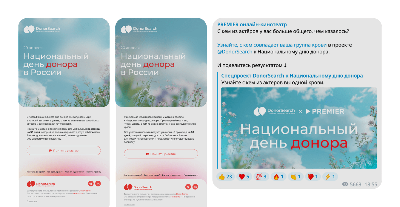 — DonorSearch получал много новых контактов, которых с помощью рассылок мотивировали сдавать кровь;