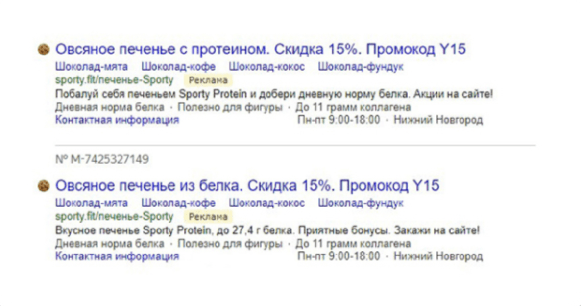 Для клиента важно было понимание, какие каналы «дают» больше конверсий в продажи. В качестве решения использовали разные промокоды на разных каналах. При составлении текстовых объявлений, сделали акцент на особенностях самого продукта, а в заголовках указывали скидку с промокодом.
