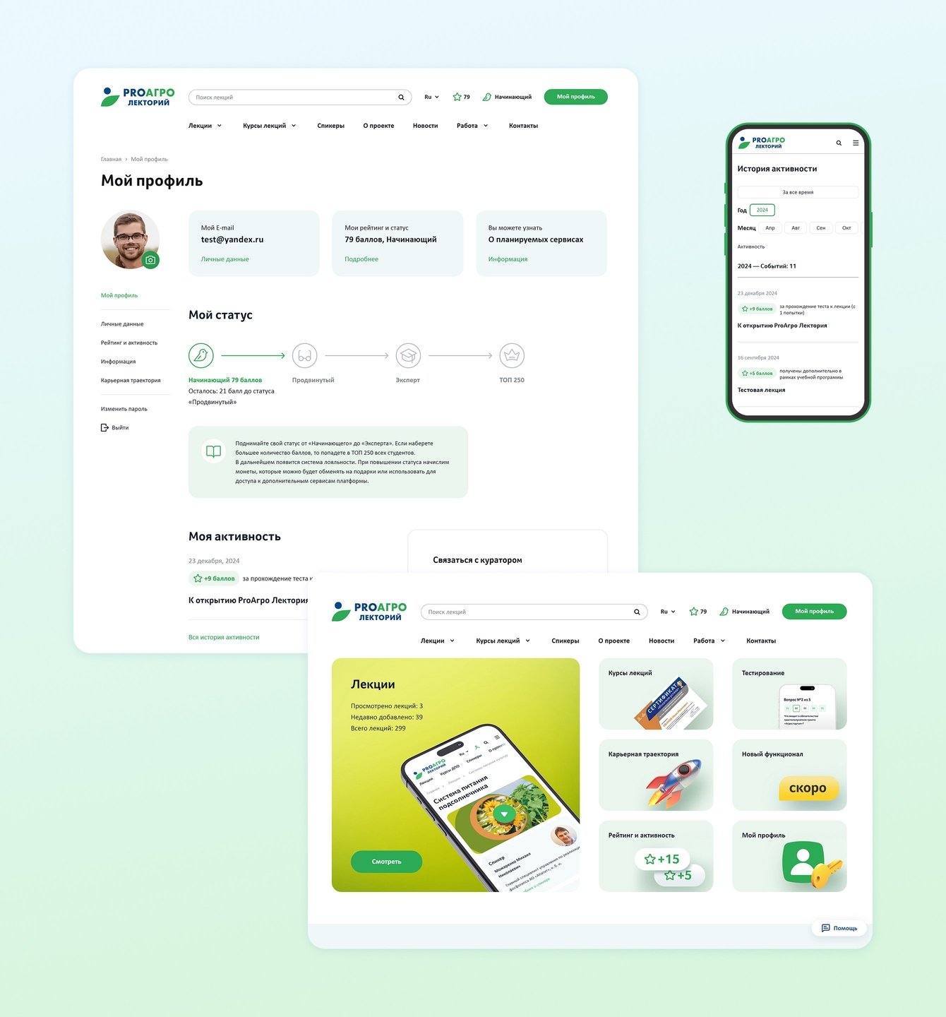 Теперь ученики могут видеть детализацию рейтинга (за что сколько баллов получили), иметь доступ к лекциям, общаться с куратором, узнавать о будущих обновлениях, строить карьерную траекторию.