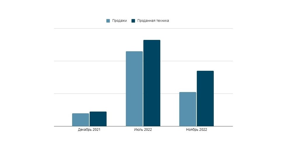 Общее количество проданной техники - более 330 единиц. Менее 2400 рублей - цена продажи единицы техники.