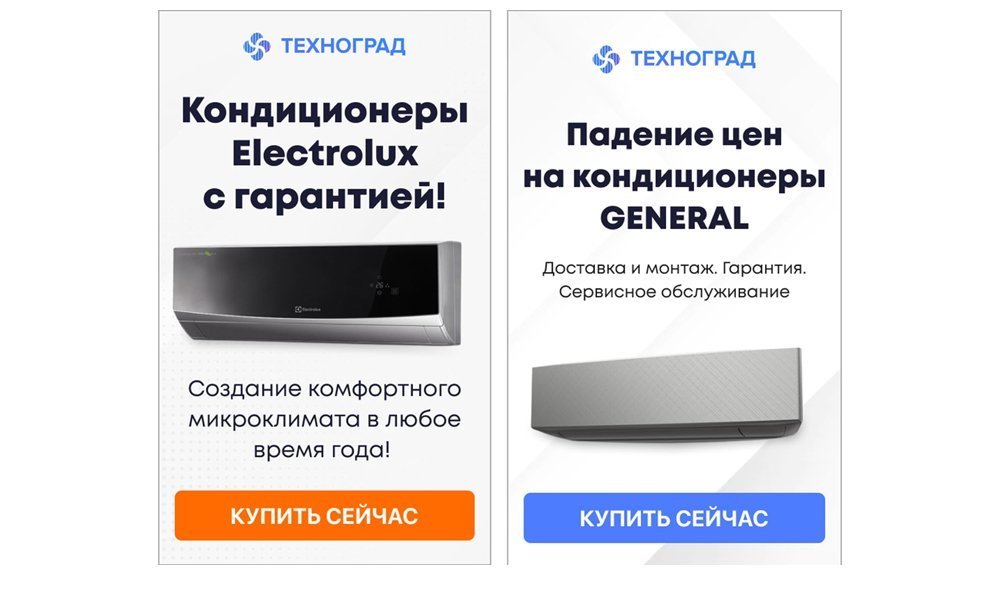 - реклама по общим запросам: кондиционеры для дома, напольные кондиционеры и т.д.;