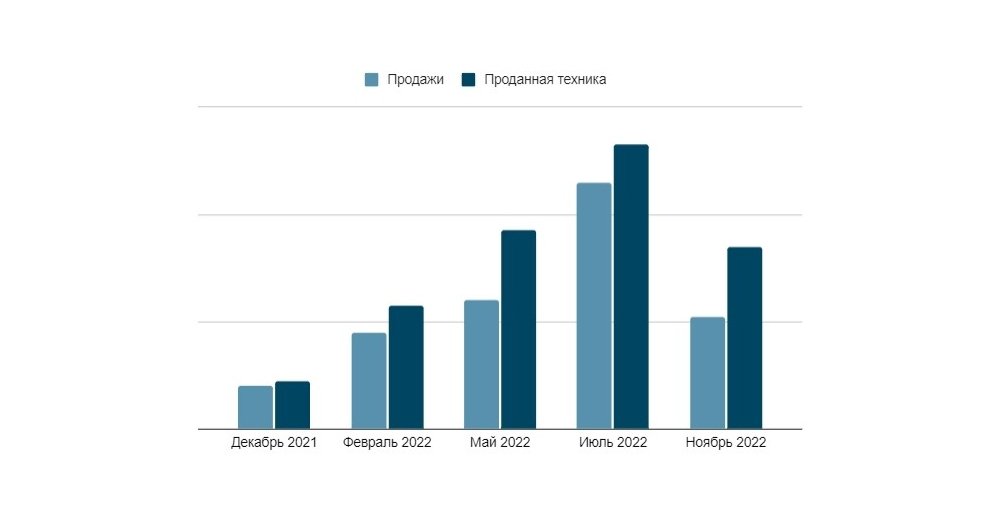 Всего с января по ноябрь было получено более 215 продаж. Динамика продаж, начиная с декабря 2021 года:
