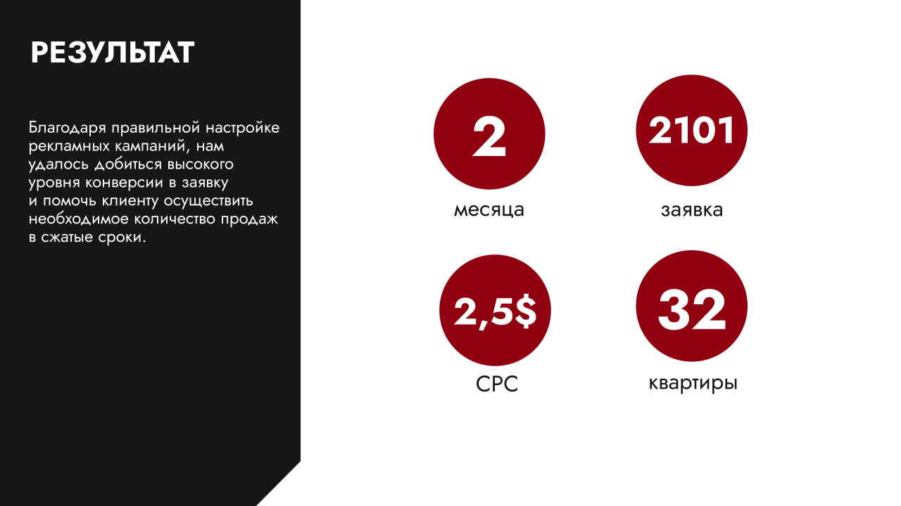 Продать 30 квартир с помощью рекламы за 2 месяца.