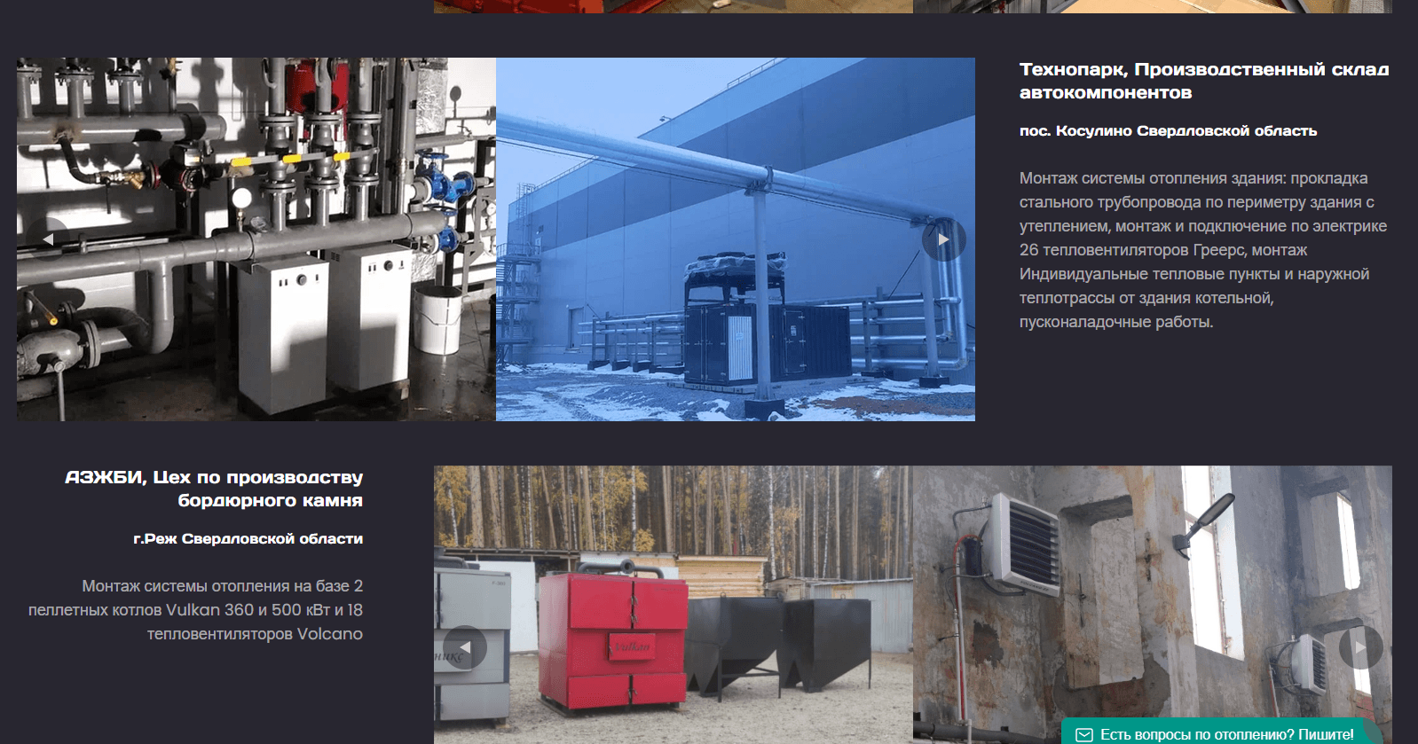 Создать продающую страницу по услуге Монтаж систем отопления в Уральском ФО для коммерческих и производственных помещений.