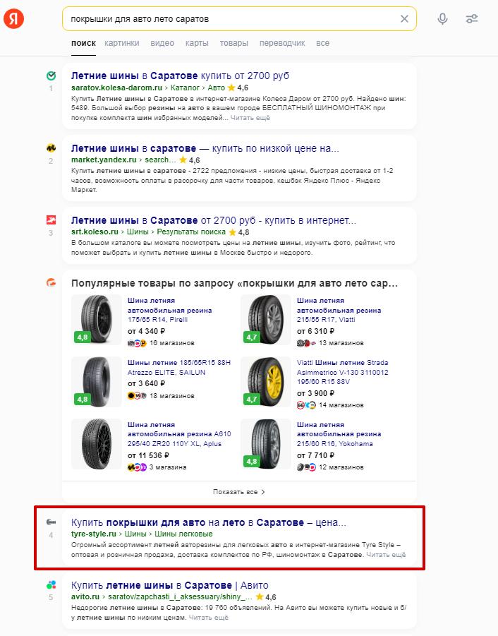 Пример каталога для региона Саратов: