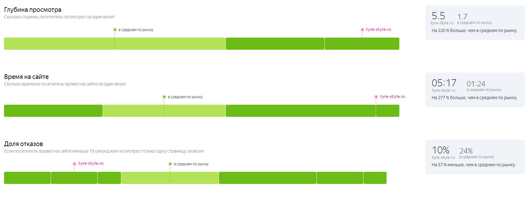 Показатели в сравнении с рынком.