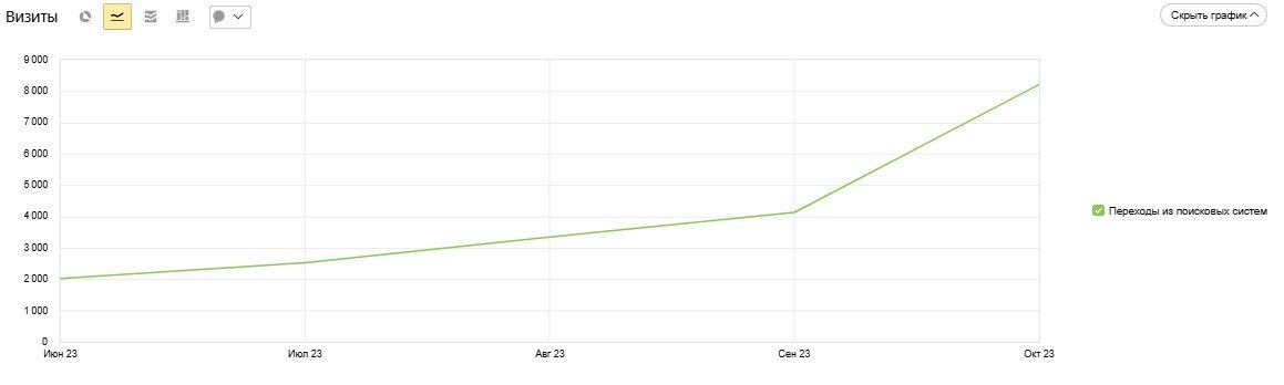 Сайт демонстрирует стабильный рост трафика из поисковых систем — за 5 месяцев рост в 310%: