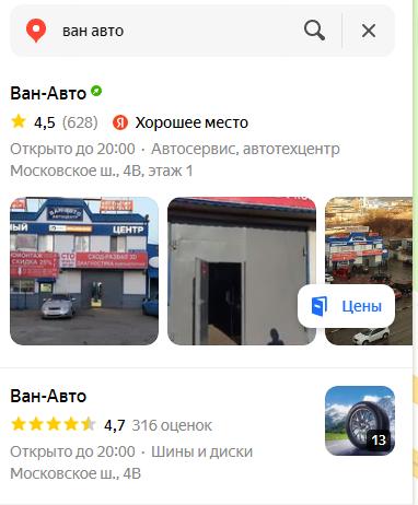 Представление на Яндекс Картах: