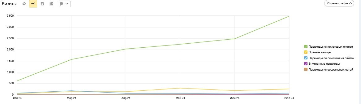 С начала нашей сео-оптимизации количество новых посетителей выросло в 5-6 раз.