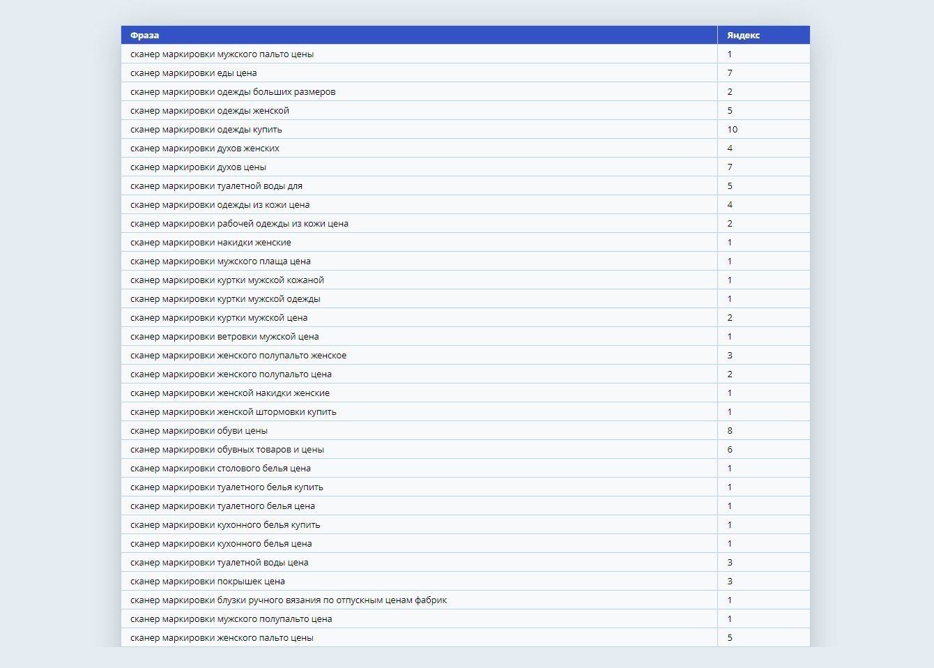 1. Разработать актуальное семантическое ядро