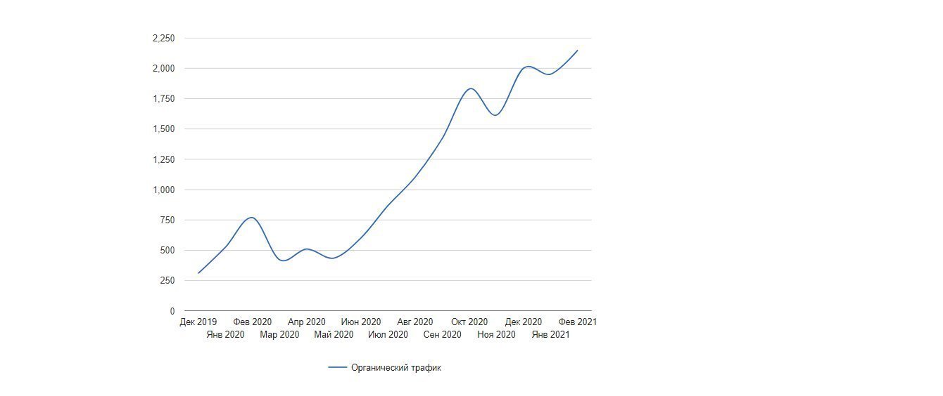 1. Собрали максимально полное семантическое ядро, включили ключевые запросы всех уровней: высокочастотные, среднечастотные, низкочастотные для масштабирования видимости сайта по всем направлениям