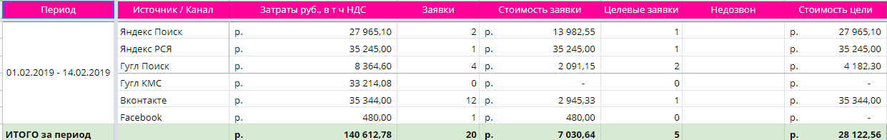 В результате группа с нужной семантикой показала стоимость целевой заявки – 6.845 ₽. И мы решили масштабировать этот канал.