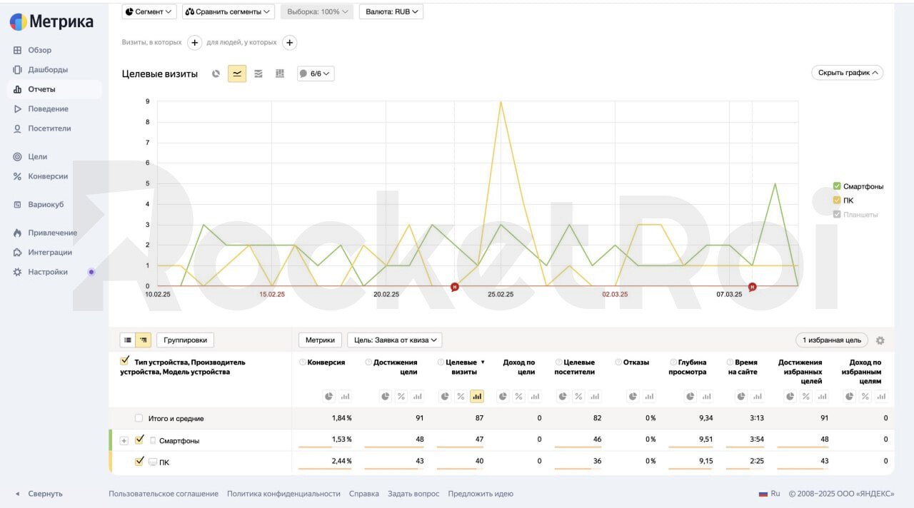 Далее мы настроили отслеживали заявки и события с помощью меток UTM и целей в Яндекс.Метрике и начали A/B-тестирование посадочных страниц.