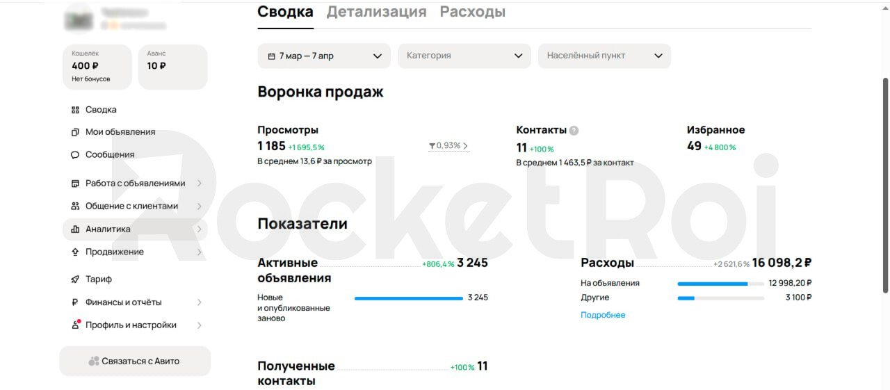 На момент написания кейса результаты у Авито совсем небольшие.