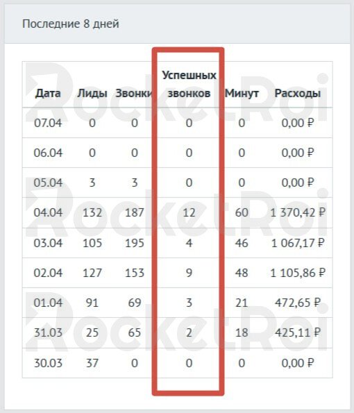 На скриншоте из рабочего кабинета колл-центра видно, сколько успешных звонков мы получили за неделю: