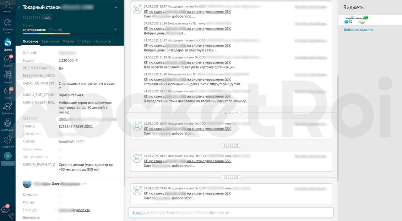 Мы выстраиваем продажи так, чтобы из каждого лида вытягивать максимум. Поэтому система учёта, контроля и автоматизации — обязательный элемент.