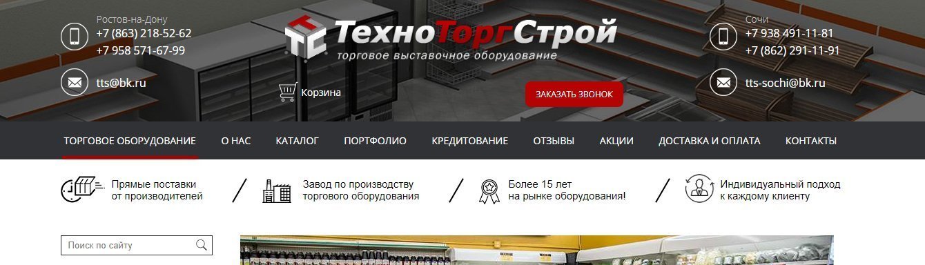7. Доработали главную страницу сайта: разместили кнопку «Корзина», Блок преимуществ, интегрировали интеллектуальный поиск по сайту