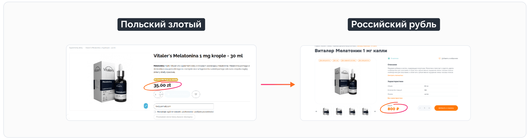Цены на сайте автоматически конвертируются из польских злотых в российские рубли по актуальному курсу.