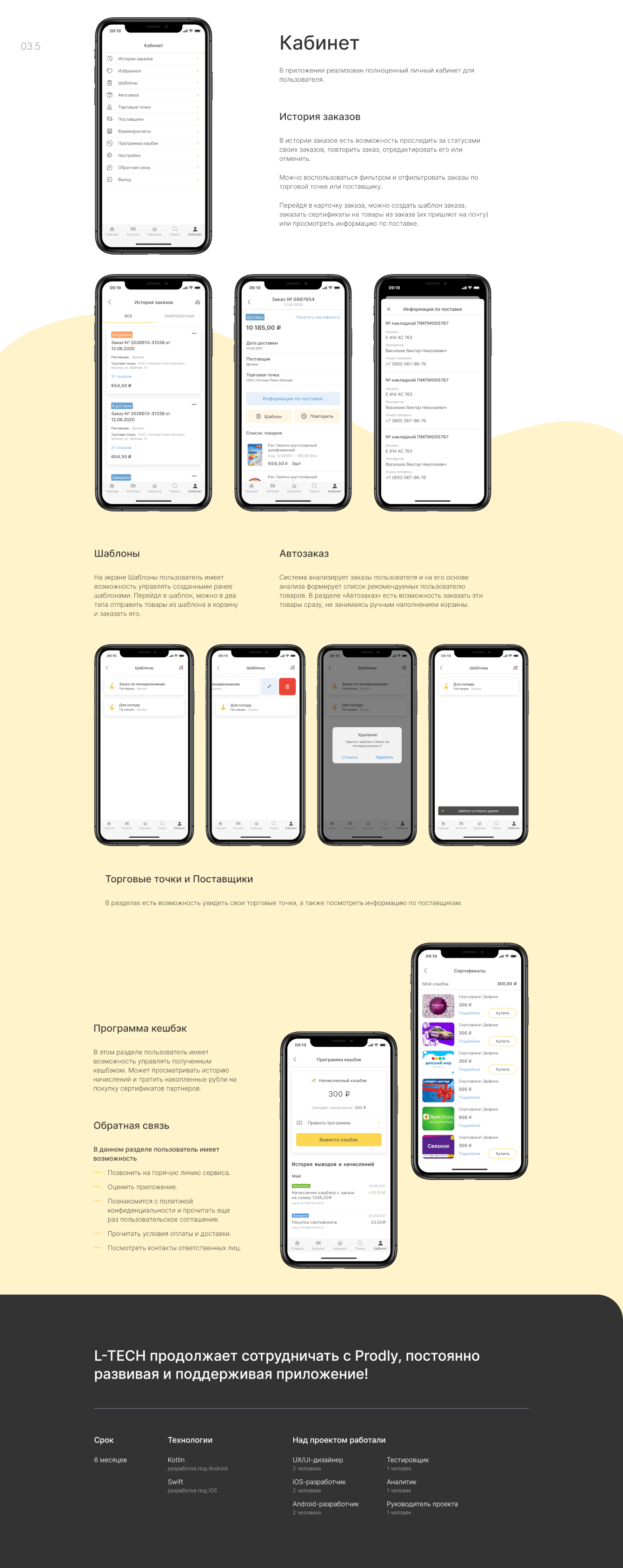 На протяжении нескольких лет сотрудничества с Prodly, компанией L-TECH были разработаны и внедрены полезные фичи приложения, например: