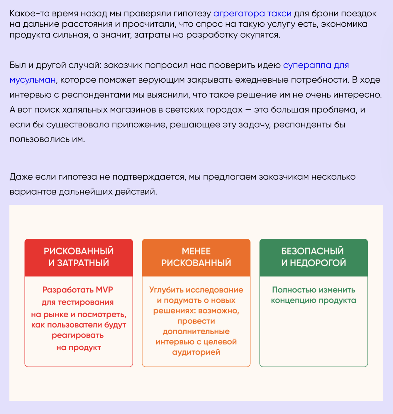 Чаще всего эта услуга востребована у стартапов: они не хотят сливать бюджет на непроверенную гипотезу. Но и для устоявшегося бизнеса, который хочет выпустить новый продукт, Product discovery может быть полезным.