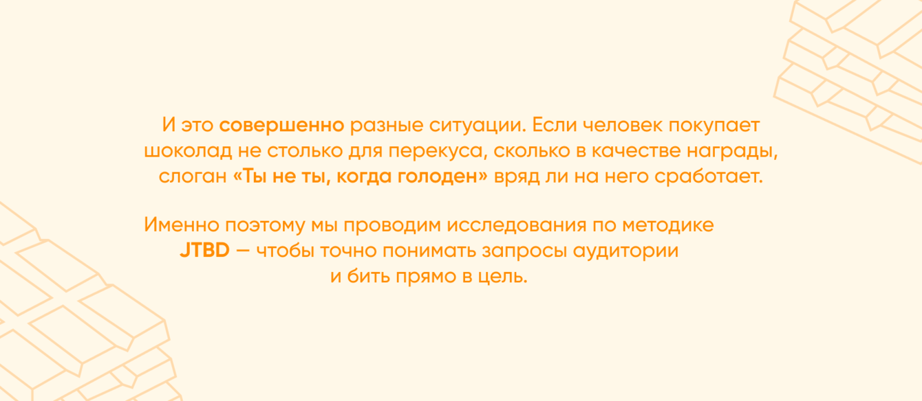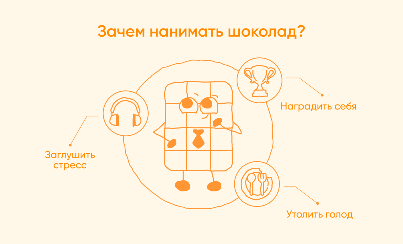 Чтобы было понятнее, приведем простой пример: для какой «работы» люди нанимают, к примеру, шоколадку?