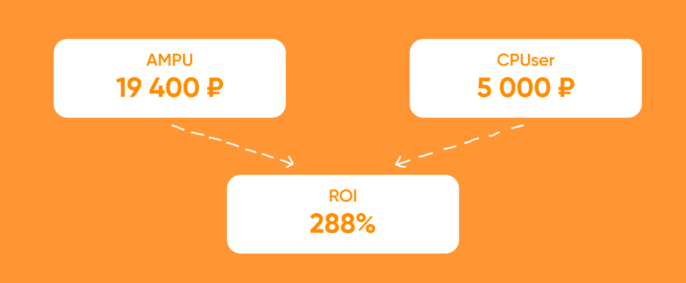 Для анализа эффективности рекламной модели мы посчитали средний доход, который платформа получает с одного пользователя за определенный период (AMPU) и стоимость привлечения одного пользователя (CPUser). Получились такие цифры: