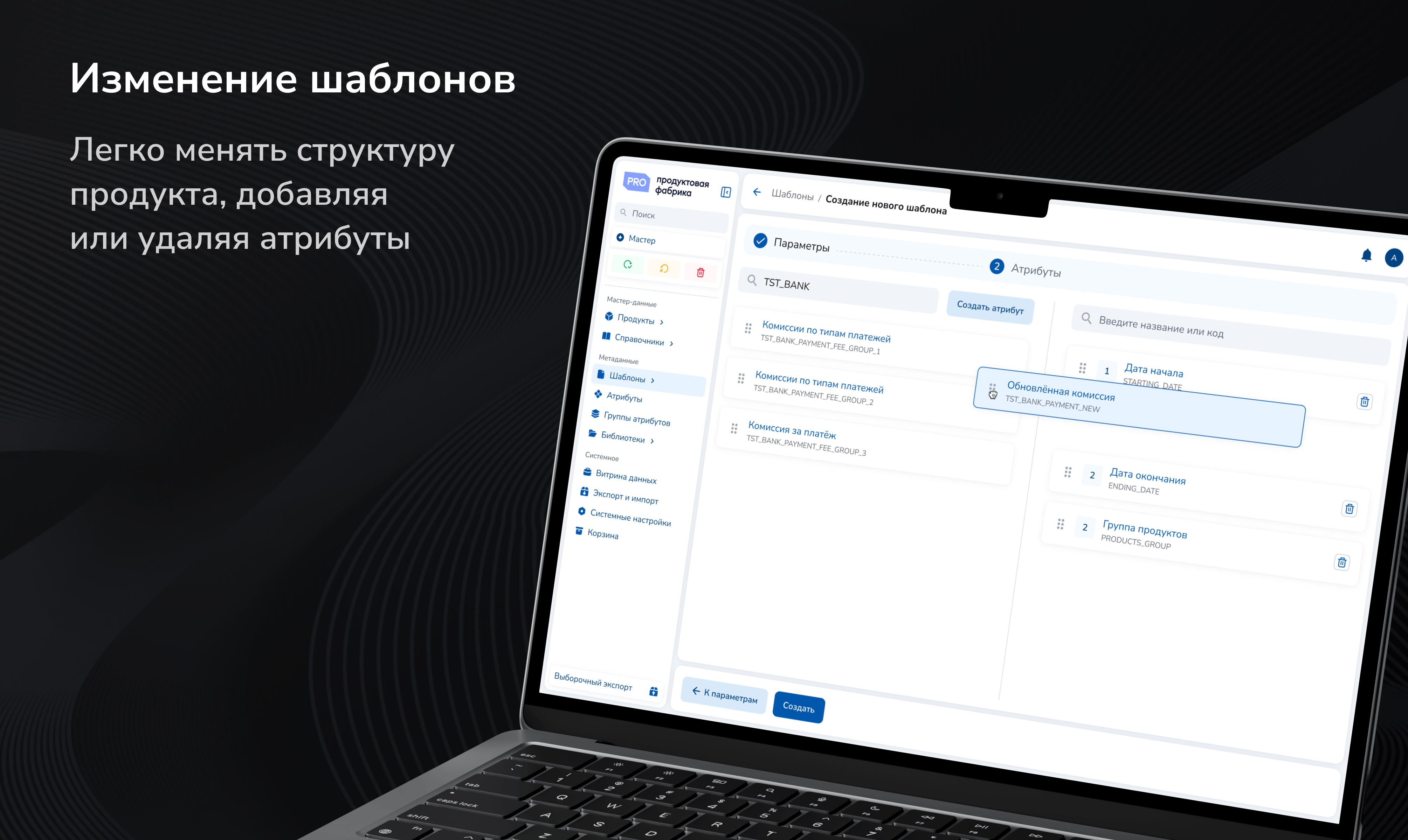 Первый — шаблон продукта: структура будущего тарифа, вклада, карты, зарплатного проекта или иного вида продукта и услуги.
