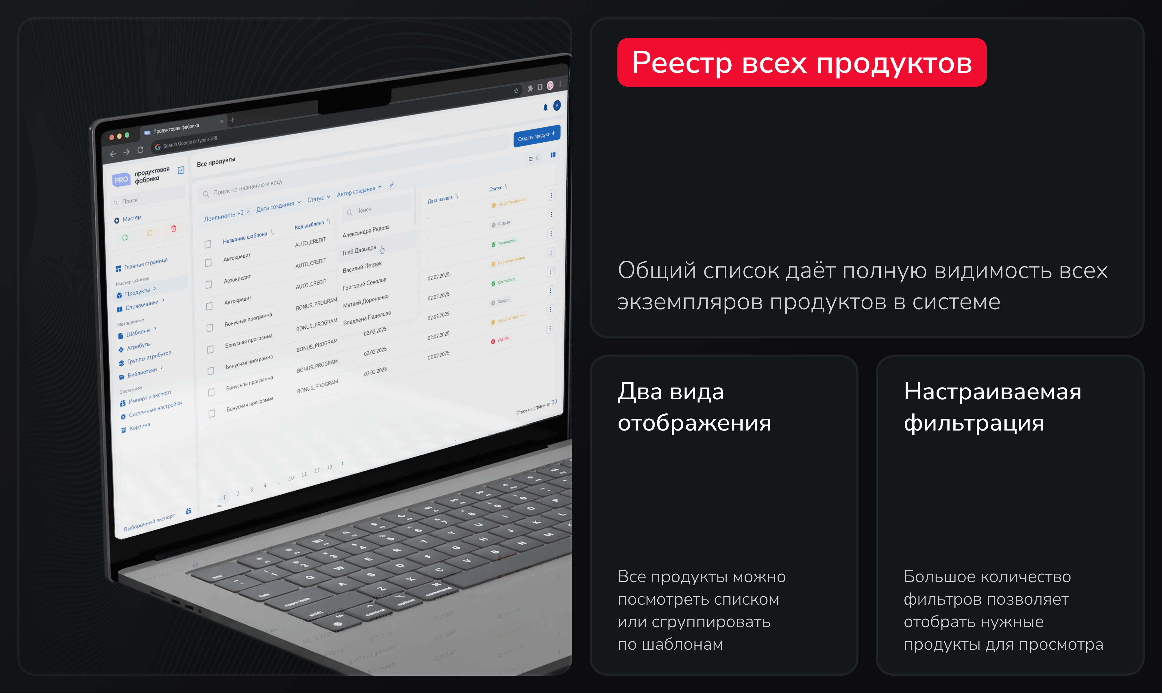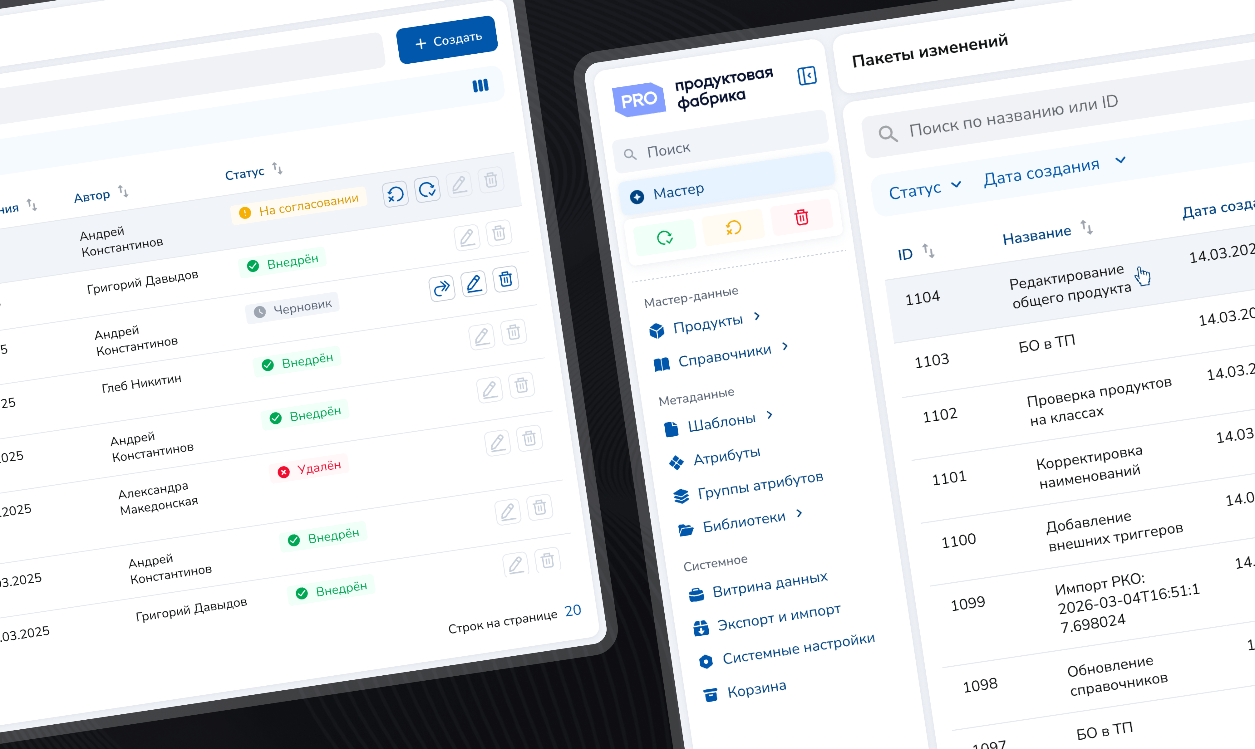 Платформа фиксирует все изменения, которые сотрудники банка вносят в продукты, тарифы и условия. Благодаря этому руководство и ответственные команды могут в любой момент увидеть, что именно было изменено, кем и когда.