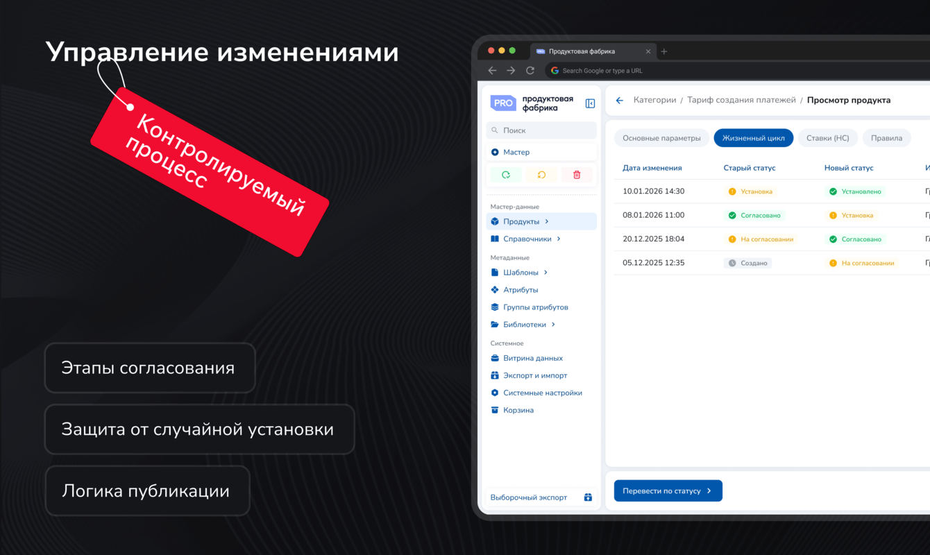Через единый интерфейс можно отслеживать разные продуктовые направления, управлять изменениями и анализировать, как новые настройки влияют на ключевые показатели — например, скорость запуска продуктов, доходность, клиентскую активность или конверсию. Дополнительно это упрощает аудит изменений и делает управление продуктовой линейкой более прозрачным для бизнеса и ИТ-команд.