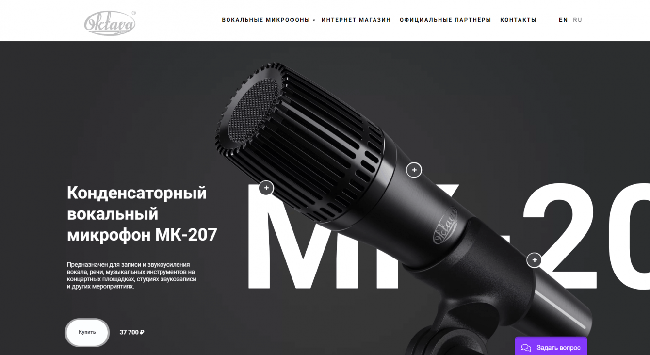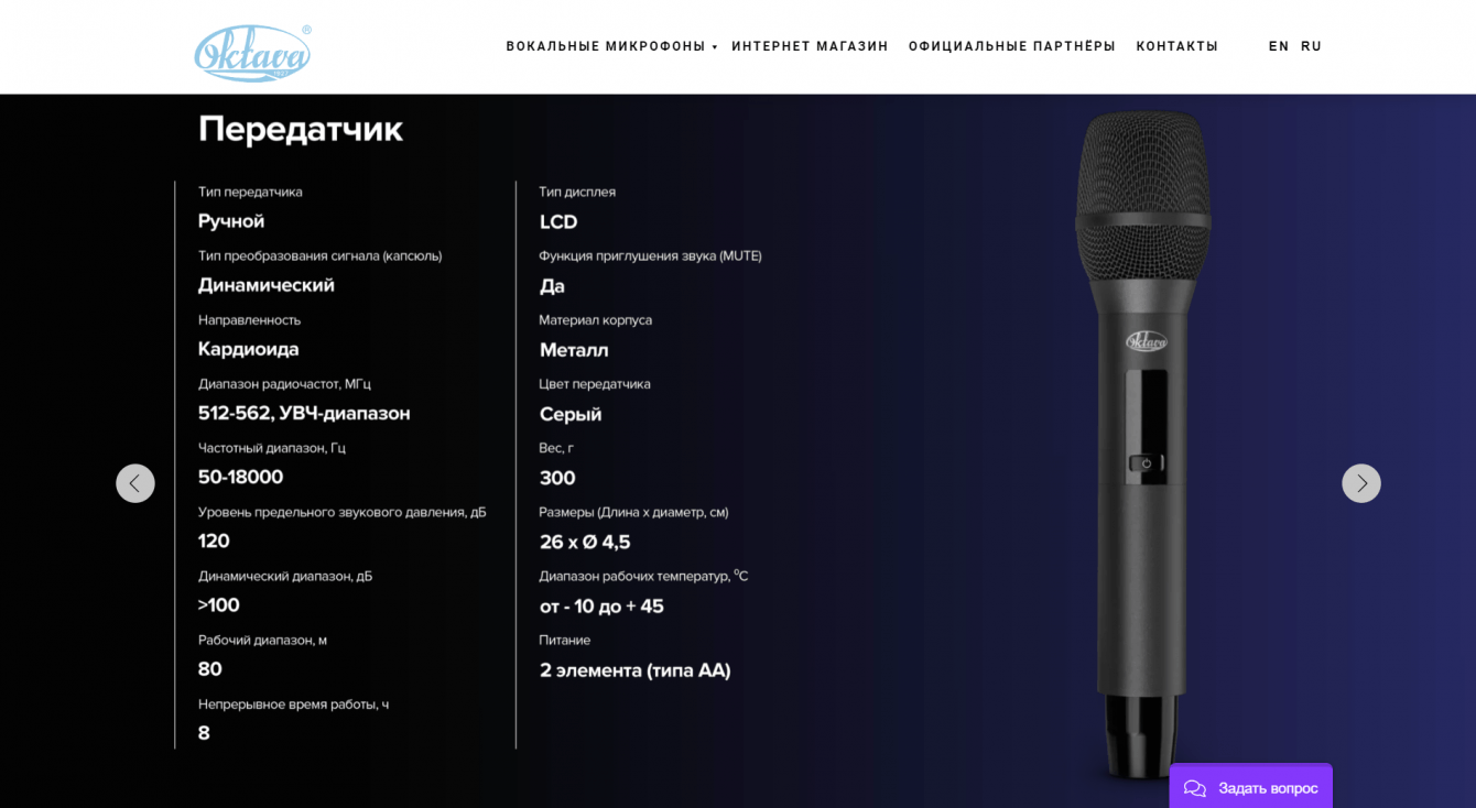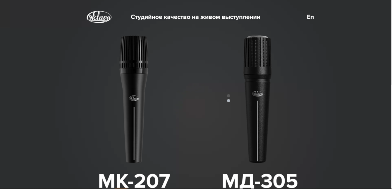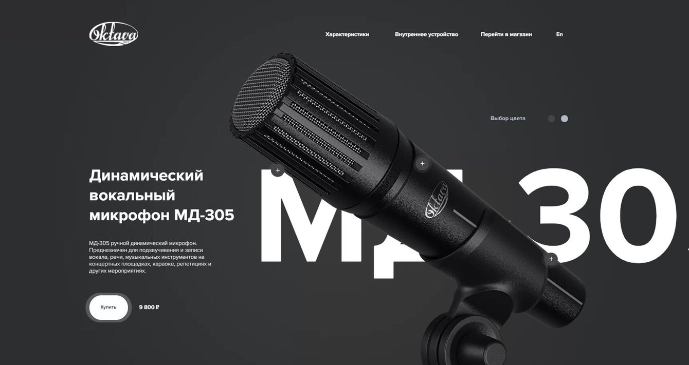 Создали современный и минималистичный сайт микрофонов компании “Октава” — легендарного производителя электроакустического оборудования