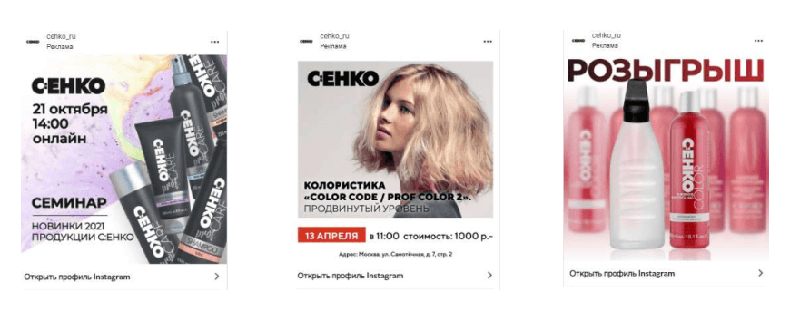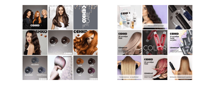 Раскладки для профиля C:EHKO отличаются динамичностью: движущиеся флаконы со средствами бренда, летящие локоны и т.п.