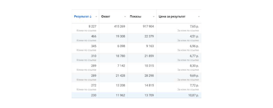 На протяжении всего периода продвижения нам удавалось держать цену за клик не выше 10 руб. Были, конечно, и неудачные кампании с высокой стоимостью клика, которые мы либо отключали либо успешно оптимизировали путем смены аудитории или креатива.